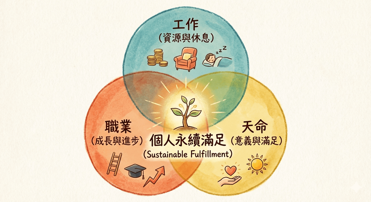 如果答案是「不願意」,那並不代表你做錯了什麼。這只是提醒你,或許你需要重新平衡「工作」「職業」「天命」三者在你生命中的比重。