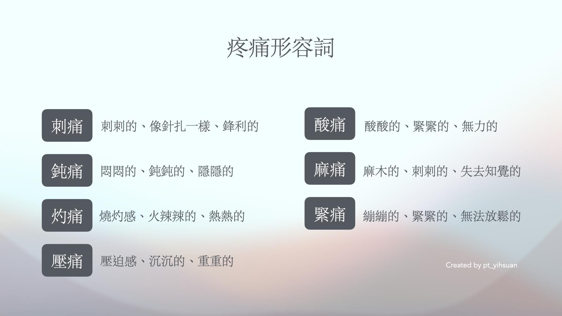 秘訣二:試著用形容詞去形容你的疼痛